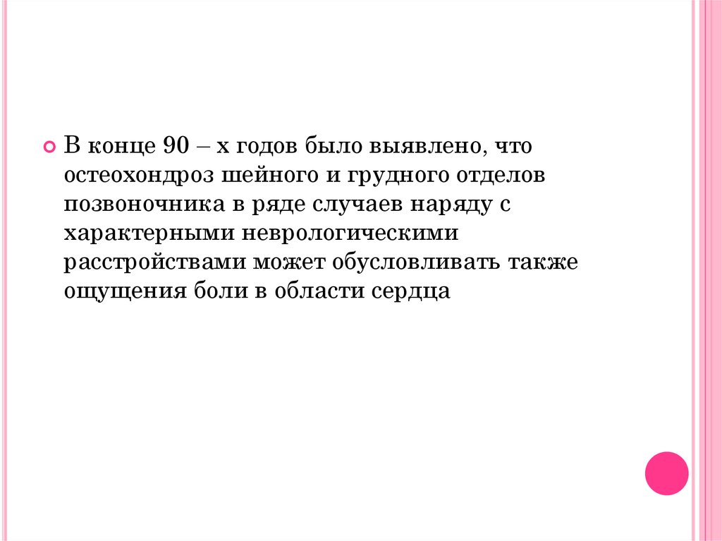 В конце 90 – х годов было выявлено, чтоостеохондроз шейного и грудного отделов
