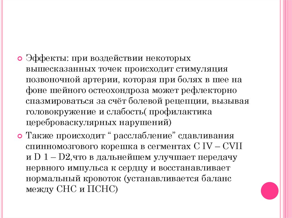 Эффекты: при воздействии некоторыхвышесказанных точек происходит стимуляция