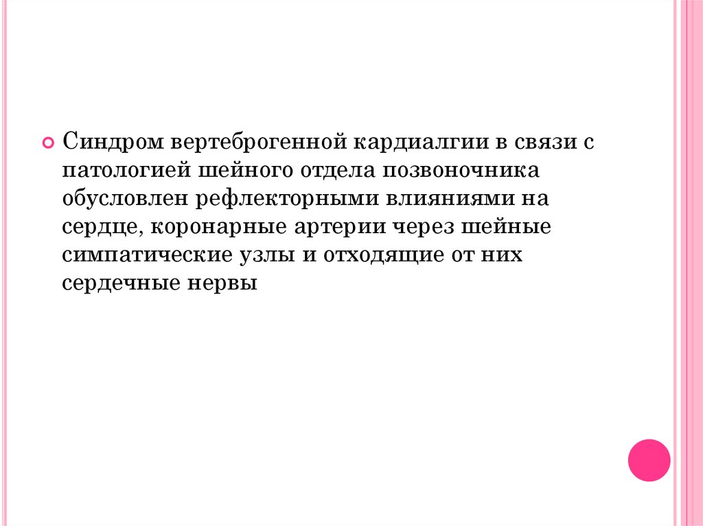 Синдром вертеброгенной кардиалгии в связи спатологией шейного отдела позвоночника