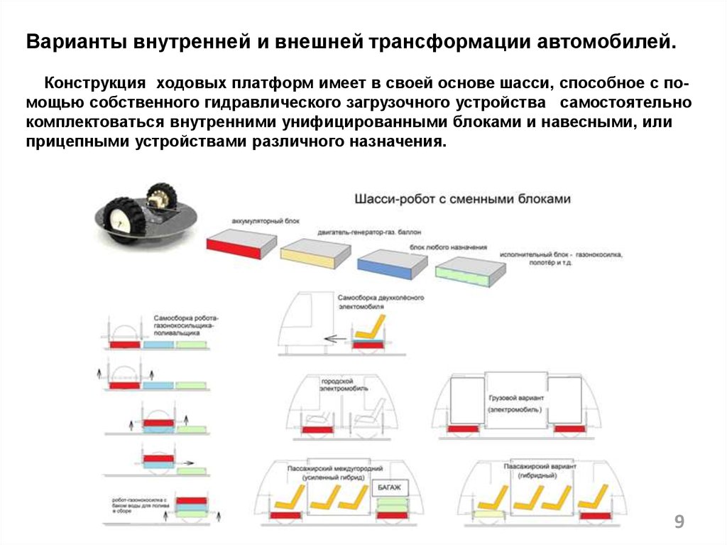 9. Варианты внутренней и внешней трансформации автомобилей. Конструкция ходовых платформ имеет в своей основе шасси, способное с