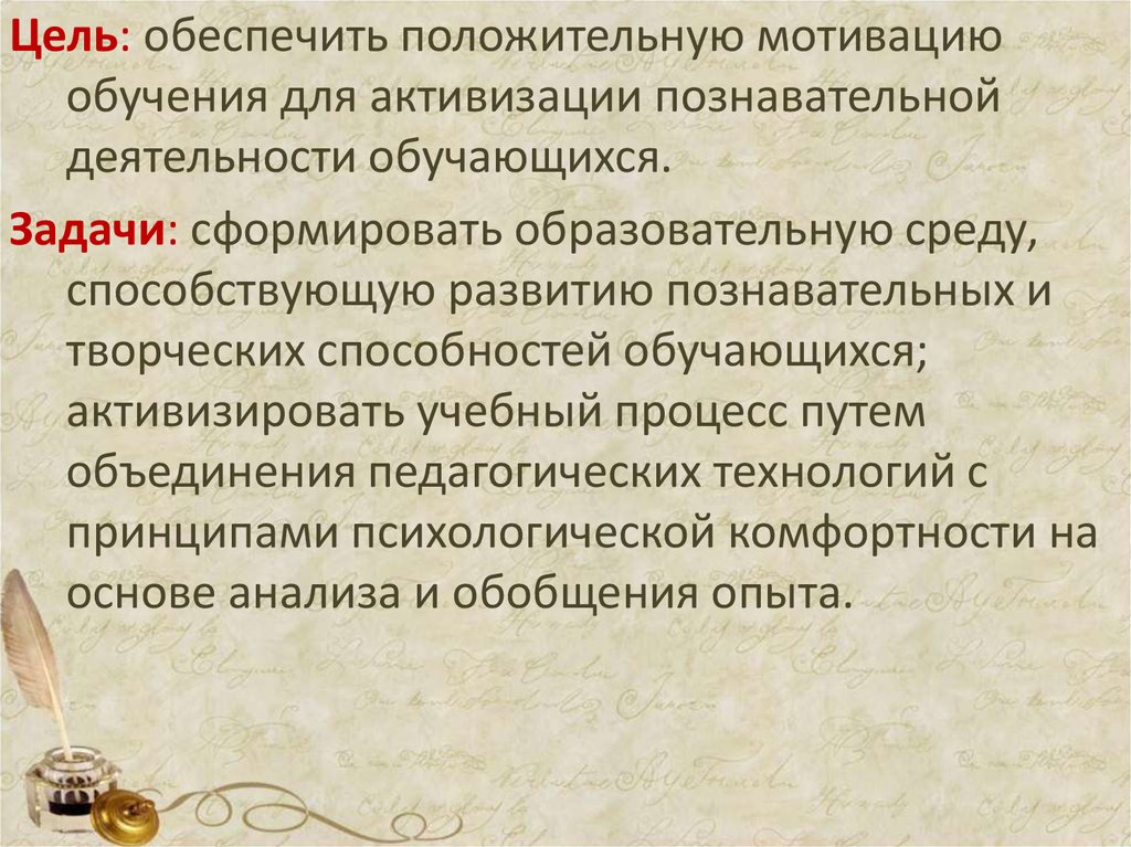 Цель: обеспечить положительную мотивациюобучения для активизации познавательной