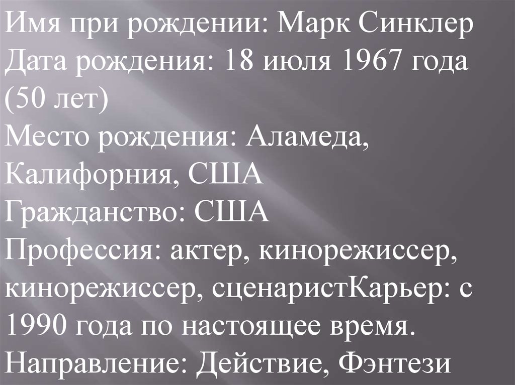 Имя при рождении: Марк СинклерДата рождения: 18 июля 1967 года