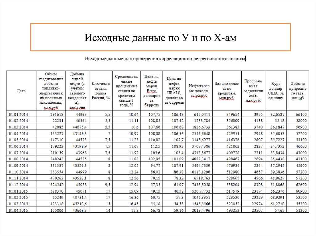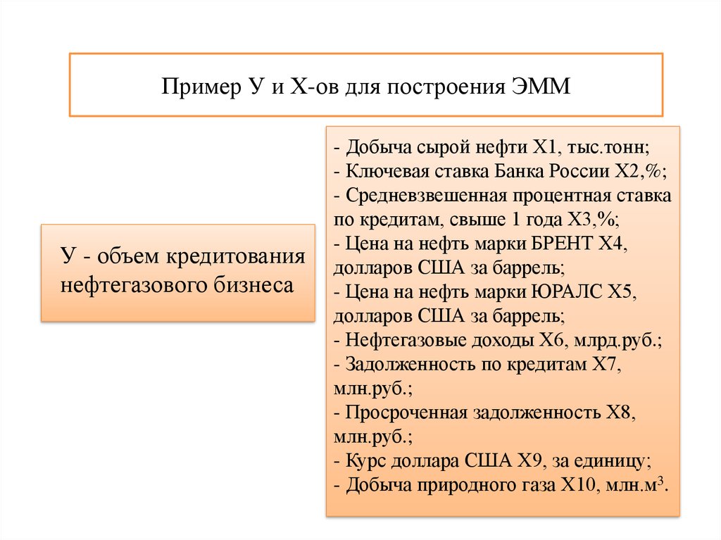 Пример У и Х-ов для построения ЭММУ - объем кредитования