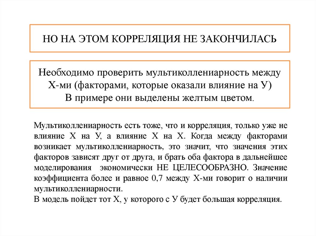 НО НА ЭТОМ КОРРЕЛЯЦИЯ НЕ ЗАКОНЧИЛАСЬНеобходимо проверить мультиколлениарность между