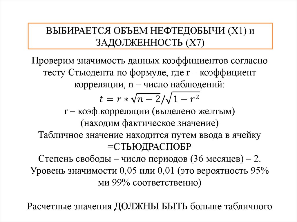 ВЫБИРАЕТСЯ ОБЪЕМ НЕФТЕДОБЫЧИ (Х1) иЗАДОЛЖЕННОСТЬ (Х7)