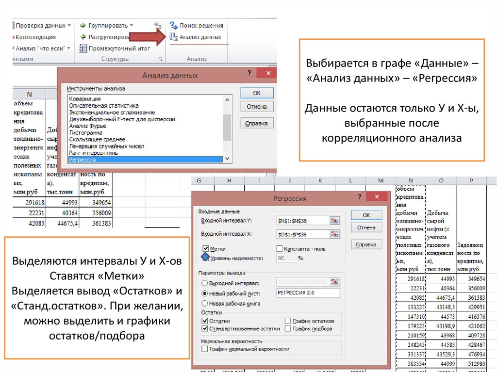 Выбирается в графе «Данные» –«Анализ данных» – «Регрессия»