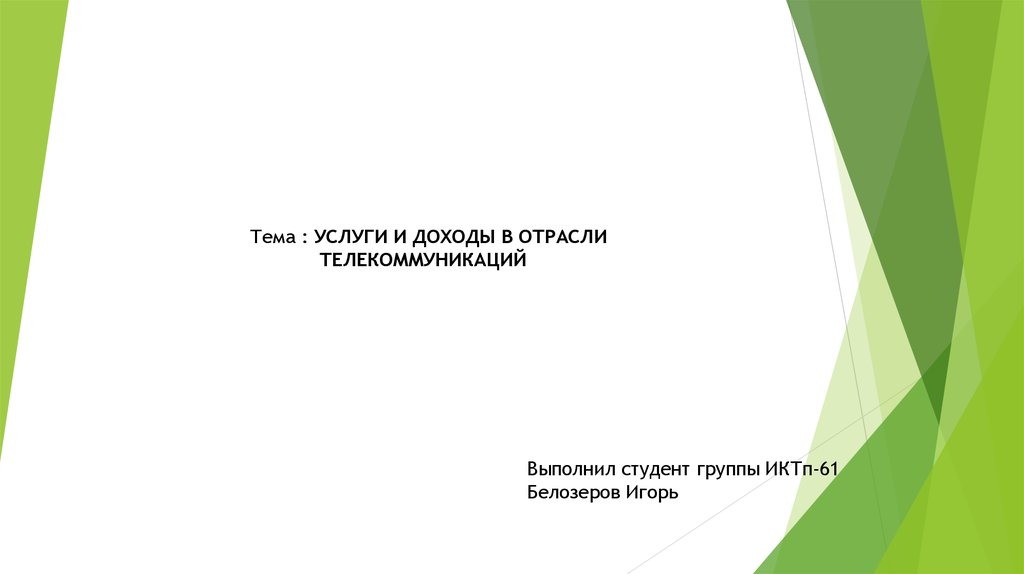 Тема : УСЛУГИ И ДОХОДЫ В ОТРАСЛИТЕЛЕКОММУНИКАЦИЙ