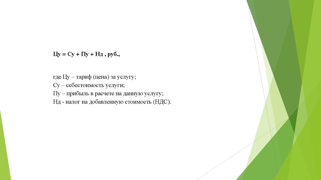 Цу = Су + Пу + Нд , руб.,где Цу – тариф (цена) за услугу;