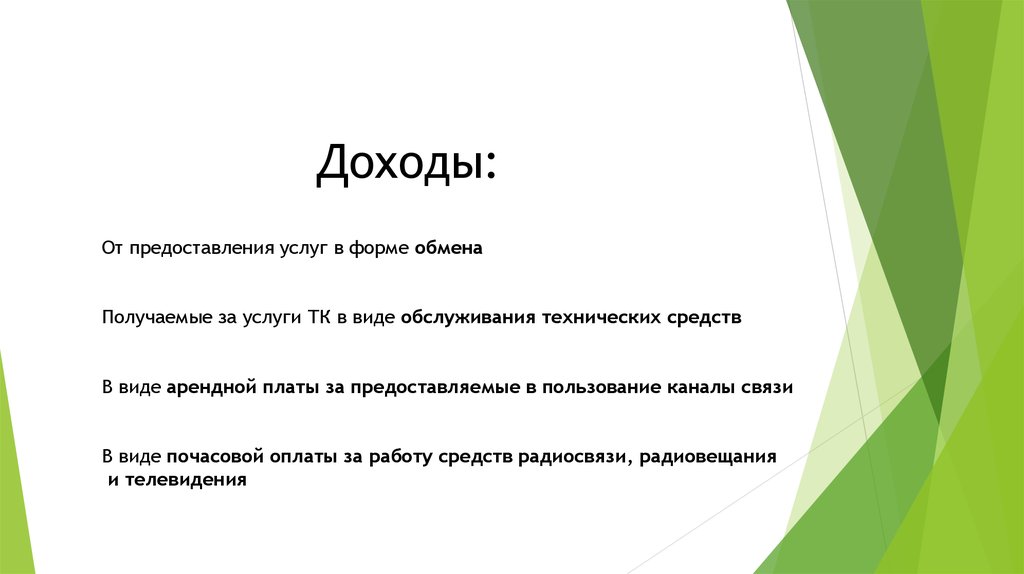 Получаемые за услуги ТК в виде обслуживания технических средств