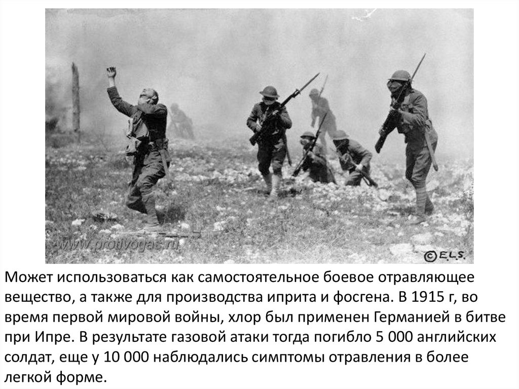 время первой мировой войны, хлор был применен Германией в битве