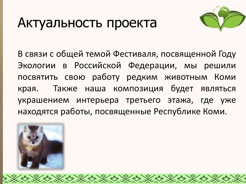 Актуальность проектаВ связи с общей темой Фестиваля, посвященной Году