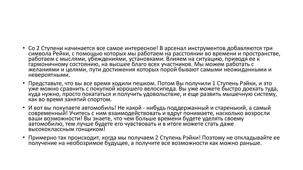 • Представьте, что вы все время ходили пешком. Потом Вы получили 1 Ступень Рэйки, и это