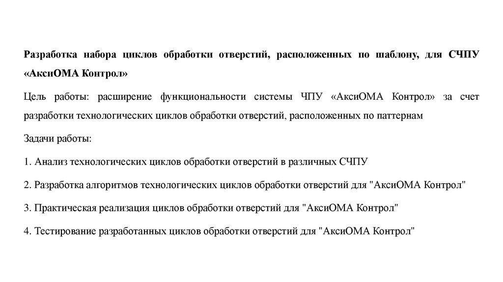 Цель работы: расширение функциональности системы ЧПУ «АксиОМА Контрол» за счет