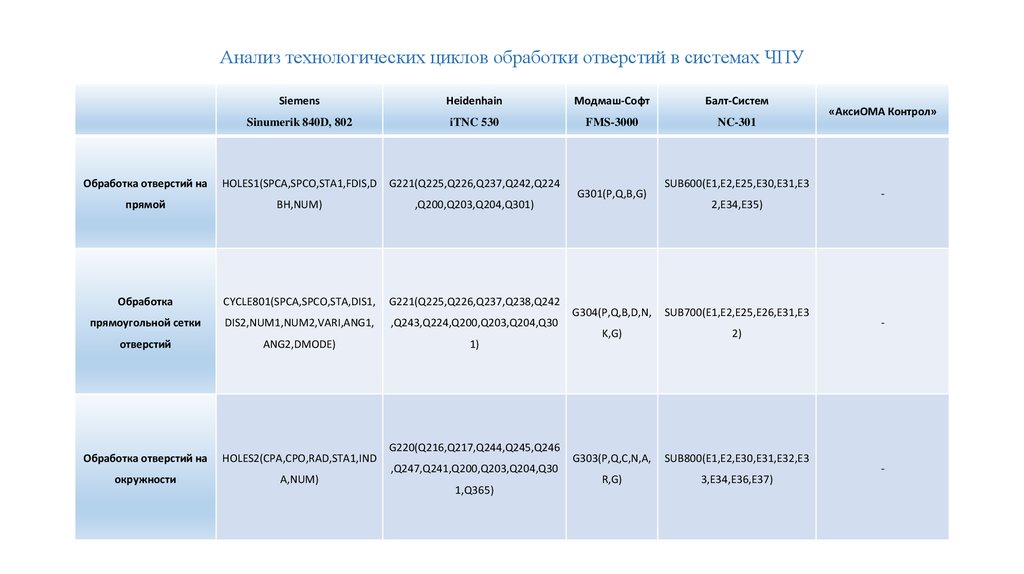 1. Анализ технологических циклов обработки отверстий в различных СЧПУ