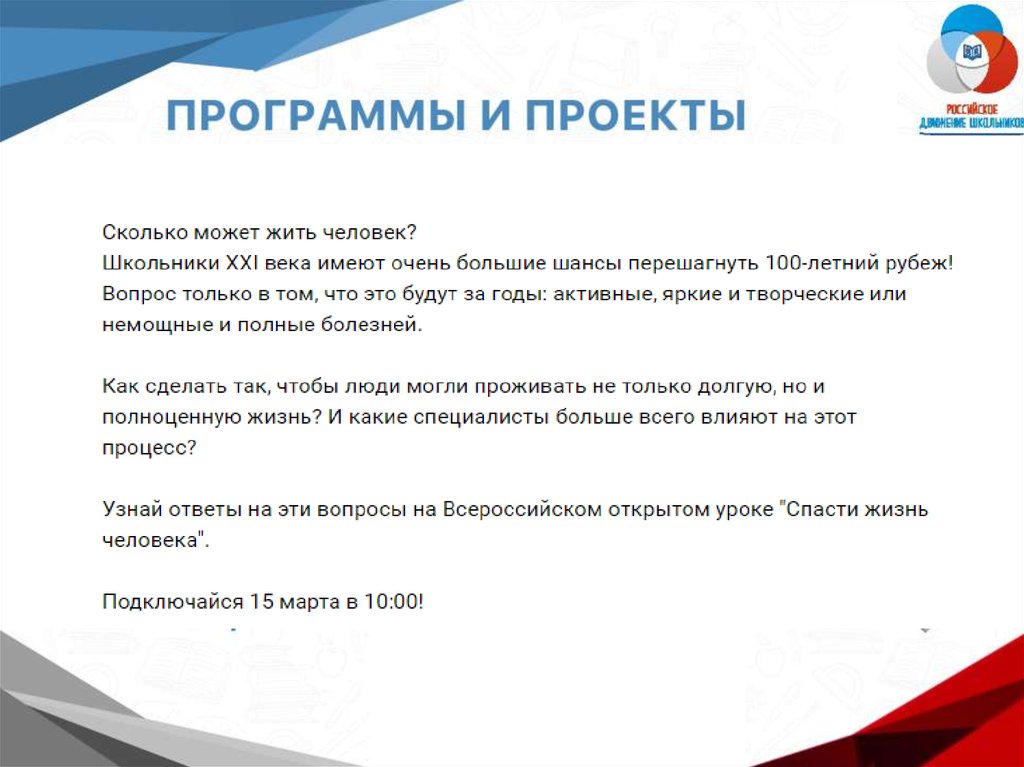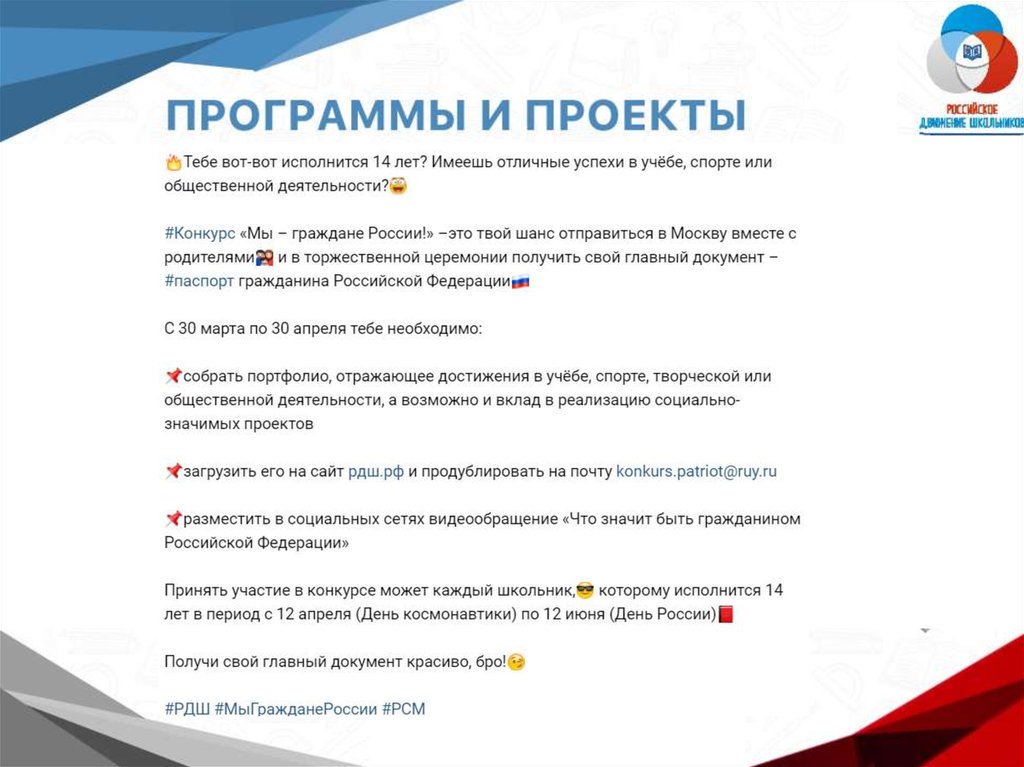 Российское движение школьников. Программы и проекты
