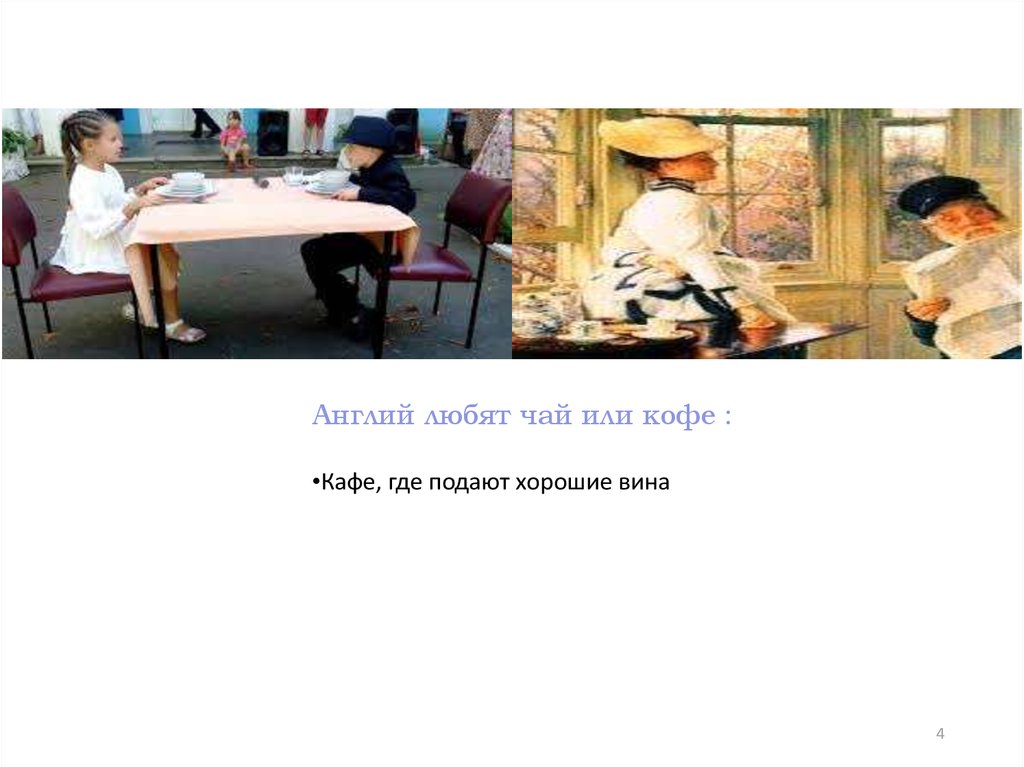 Англий любят чай или кофе :•Кафе, где подают хорошие вина