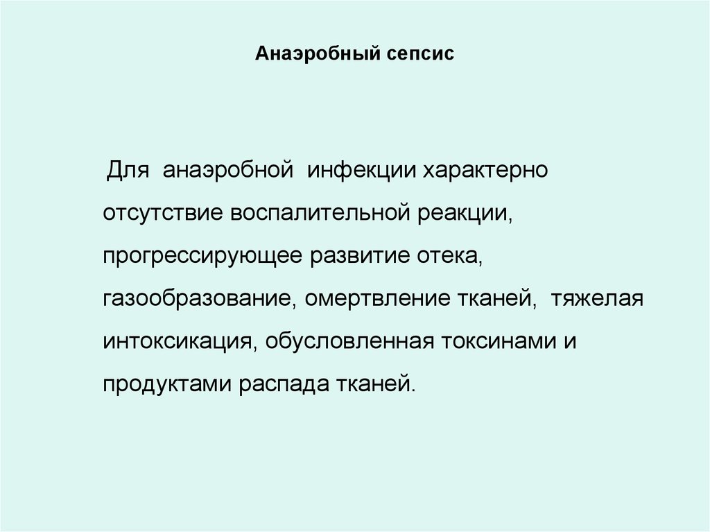 Для анаэробной инфекции характерноотсутствие воспалительной реакции,