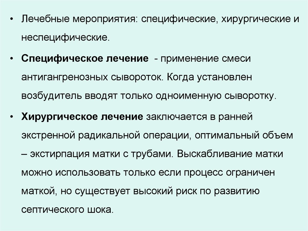 • Лечебные мероприятия: специфические, хирургические инеспецифические.