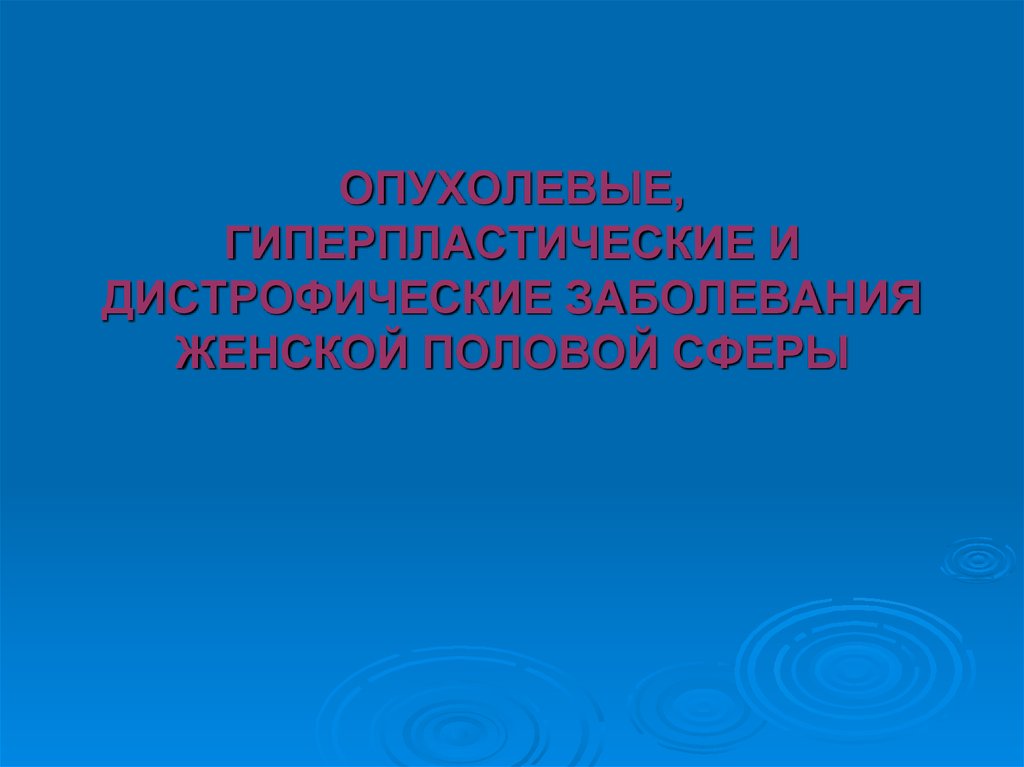 1. ОПУХОЛЕВЫЕ, ГИПЕРПЛАСТИЧЕСКИЕ И ДИСТРОФИЧЕСКИЕ ЗАБОЛЕВАНИЯ ЖЕНСКОЙ ПОЛОВОЙ СФЕРЫ