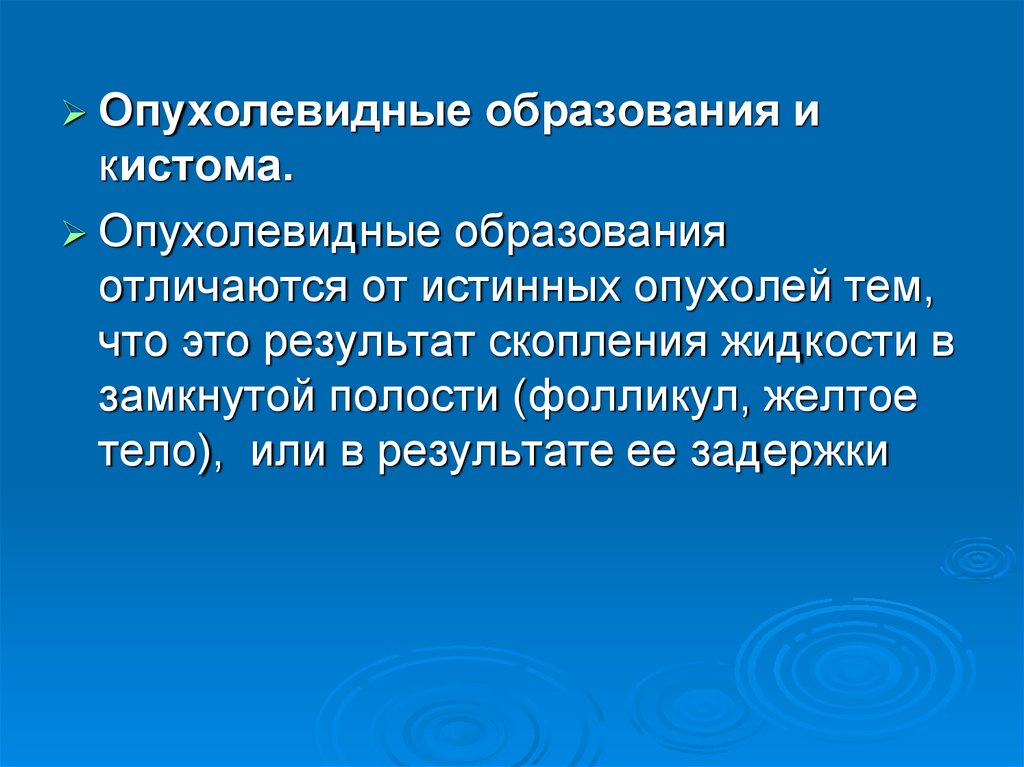 К опухолевидным образованиям относятсяретенционные кисты женских половых