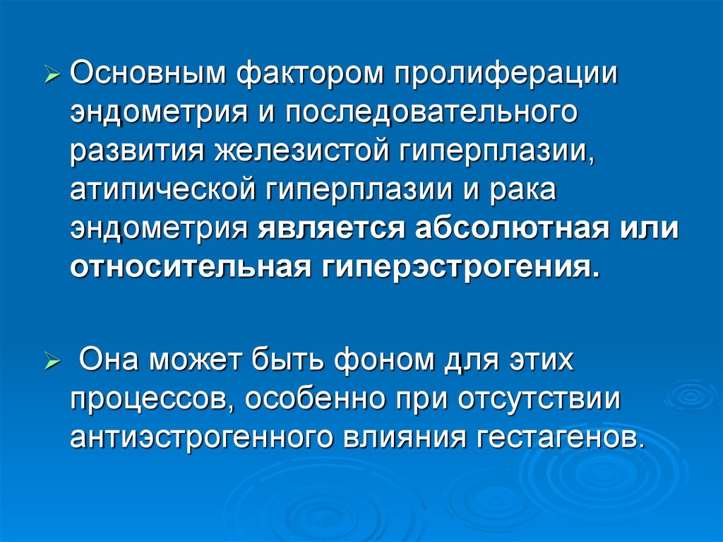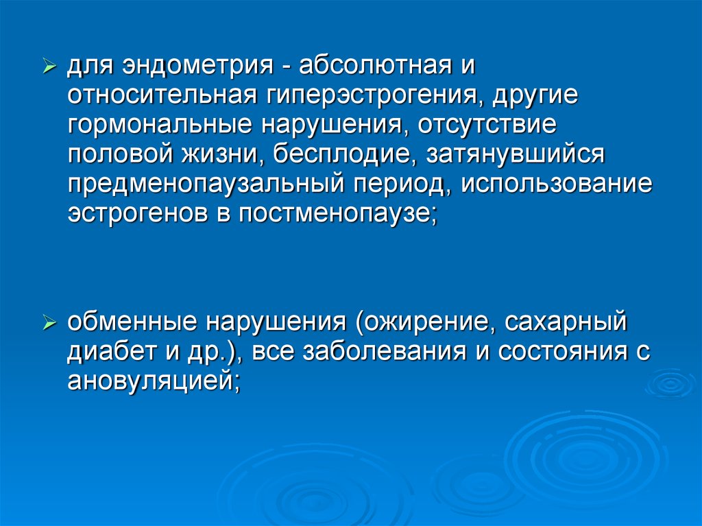 для эндометрия - абсолютная иотносительная гиперэстрогения, другие