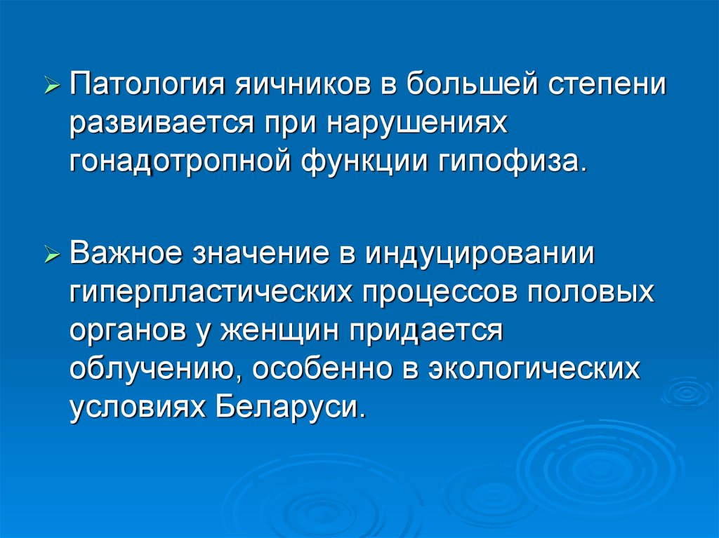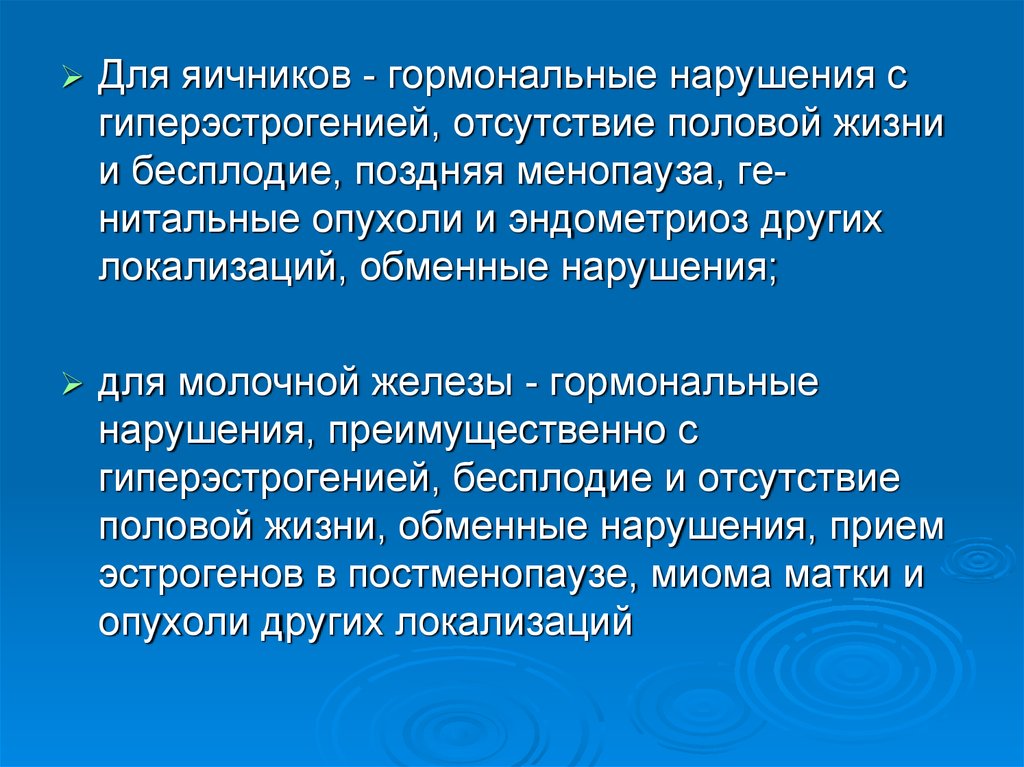 Для яичников - гормональные нарушения сгиперэстрогенией, отсутствие половой жизни