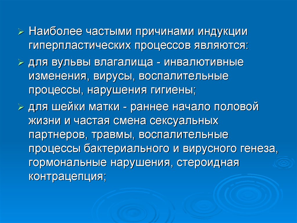 Наиболее частыми причинами индукциигиперпластических процессов являются: