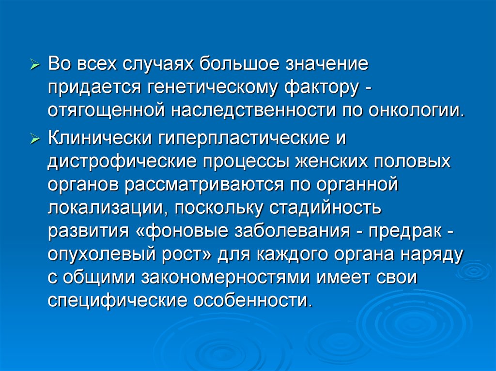 Во всех случаях большое значениепридается генетическому фактору отягощенной наследственности по онкологии.