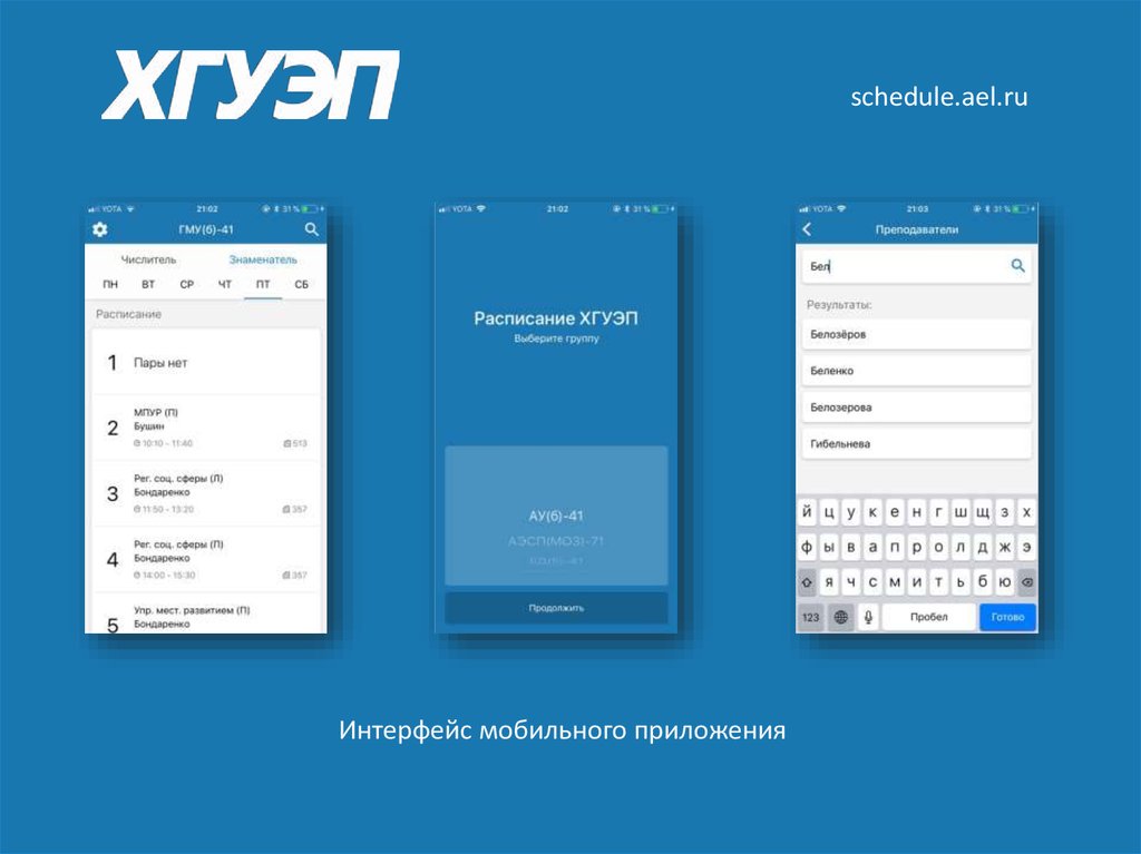 schedule.ael.ruИнтерфейс мобильного приложения