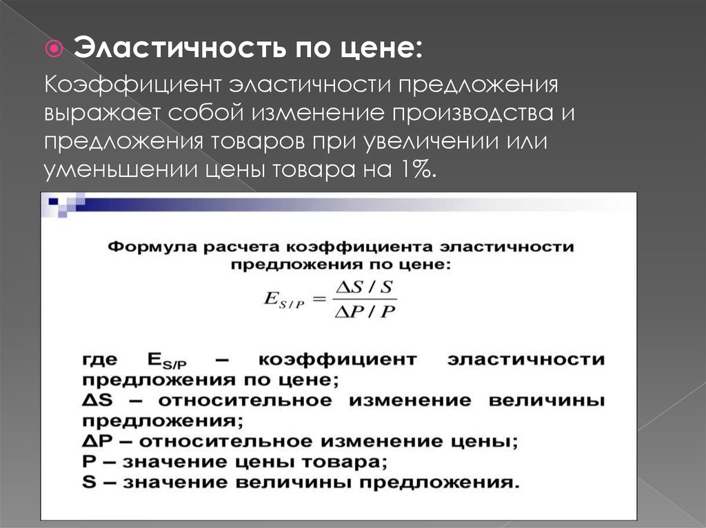 7. С ростом цен производители предлагают к продаже большие количества товаров, где P1 и P2 – цена, Q 1 и Q 2 – величина спроса, S