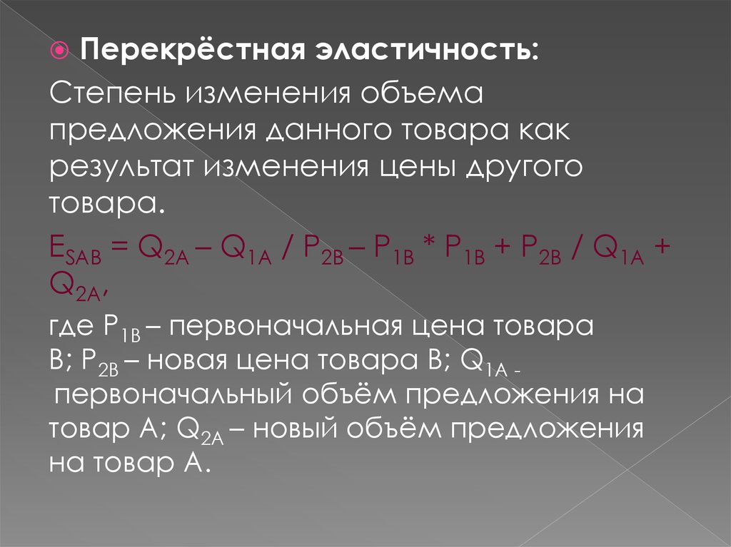 B; P2B – новая цена товара B; Q1A первоначальный объём предложения на