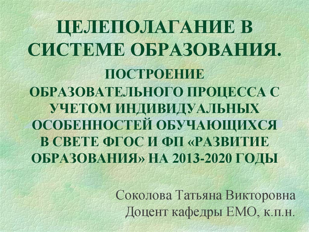 Целеполагание в системе образования. Построение образовательного процесса с учетом индивидуальных особенностей обучающихся