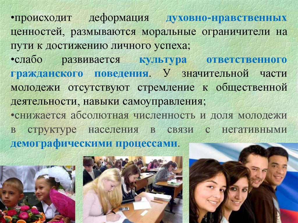 В молодежной среде существует целый комплекспроблем, который сдерживает ее развитие и приводит