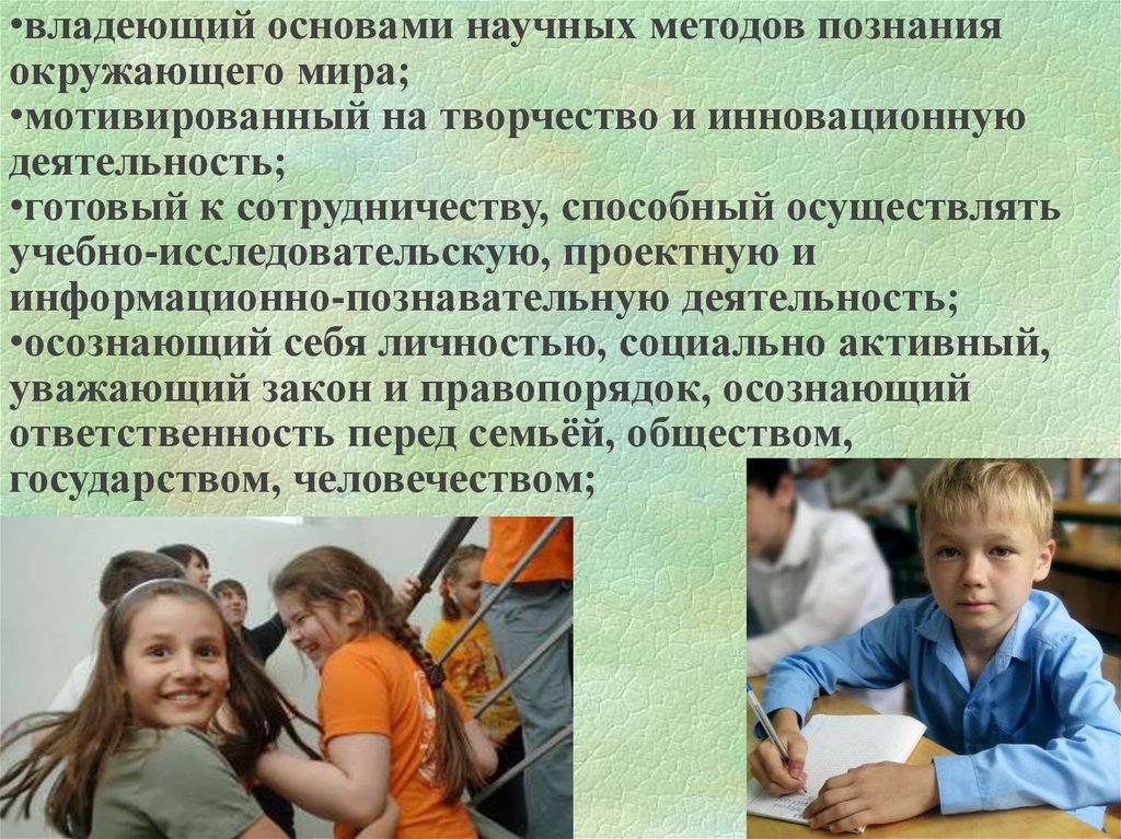 6. ФГОС (1.5) ориентирован на становление личностных характеристик выпускника («портрет выпускника школы»):