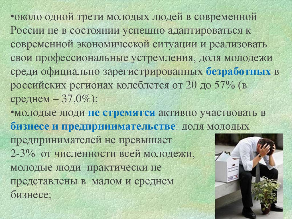 •около одной трети молодых людей в современнойРоссии не в состоянии успешно адаптироваться к
