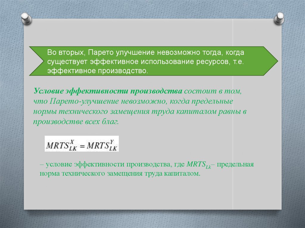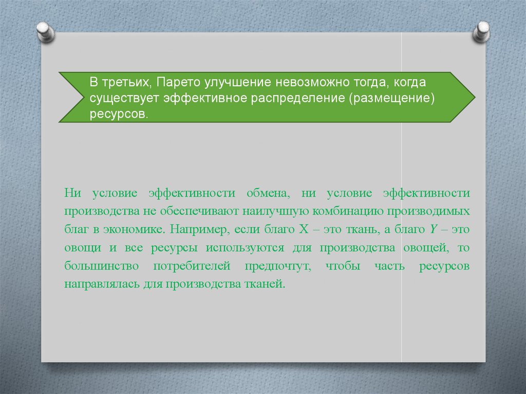 Во вторых, Парето улучшение невозможно тогда, когдасуществует эффективное использование ресурсов, т.е.