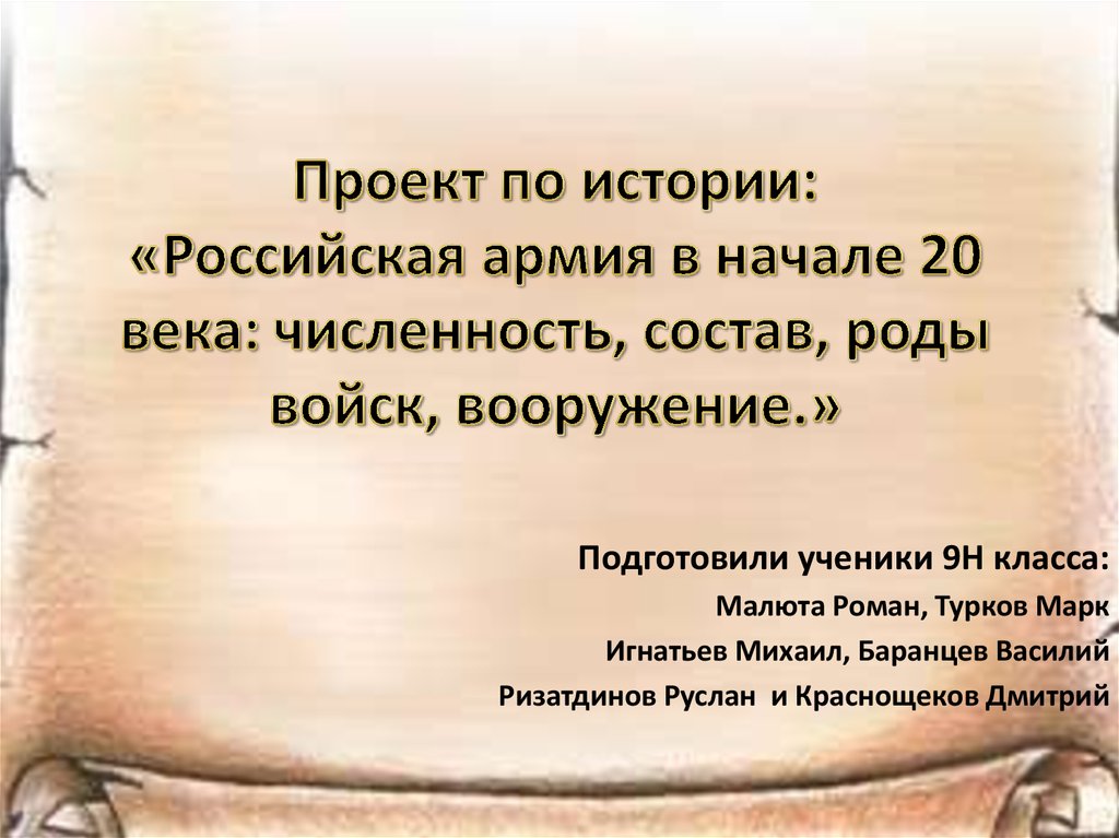 Проект по истории: «Российская армия в начале 20 века: численность, состав, роды войск, вооружение»