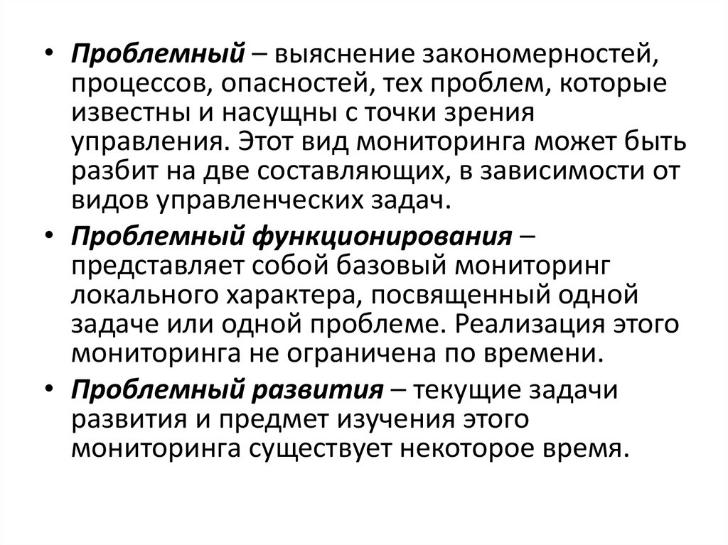 • Базовый (фоновый) – выявление новых проблем и опасностей до
