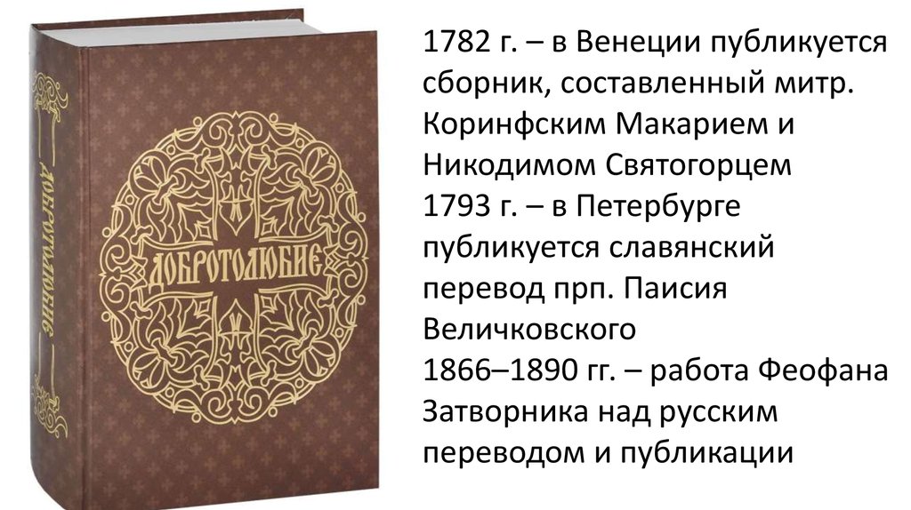 1782 г. – в Венеции публикуетсясборник, составленный митр.