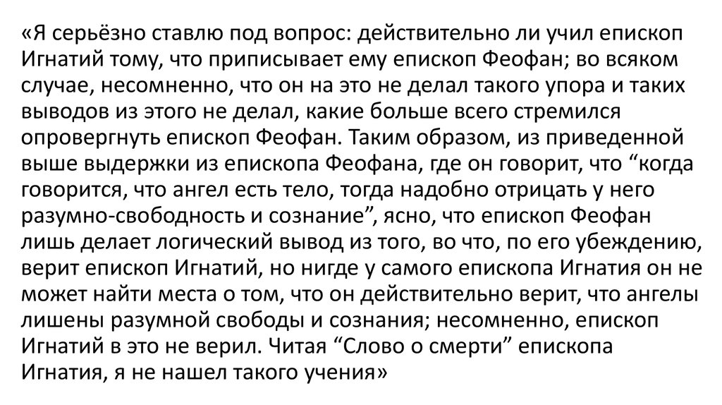 «Я серьёзно ставлю под вопрос: действительно ли учил епископИгнатий тому, что приписывает ему епископ Феофан; во всяком