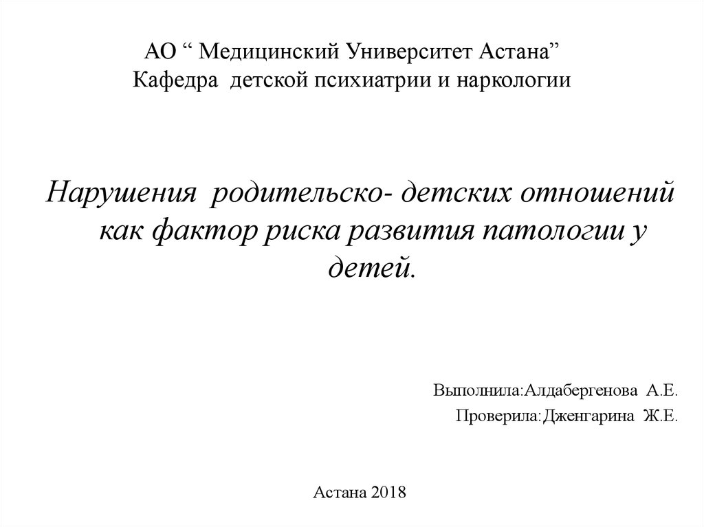 1. АО “ Медицинский Университет Астана” Кафедра детской психиатрии и наркологии