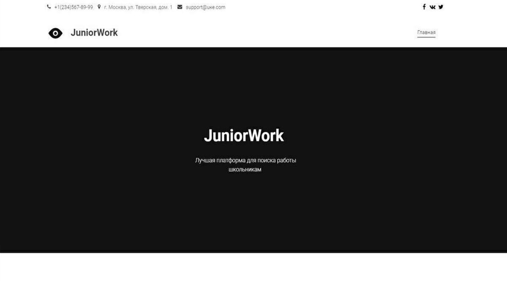5. Итак, мы представляем вам проект «JuniorWork», целью которого является создание единой платформы для поиска работы школьникам в