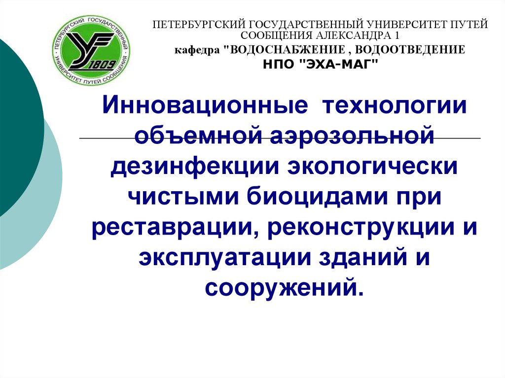 1. Инновационные технологии объемной аэрозольной дезинфекции экологически чистыми биоцидами при реставрации, реконструкции и