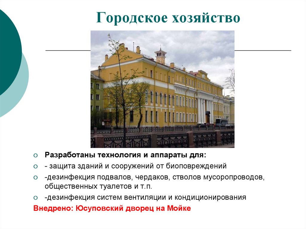 Разработаны технология и аппараты для:- защита зданий и сооружений от биоповреждений
