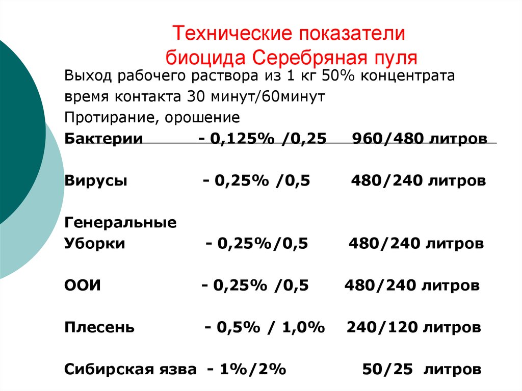 5. Основные режимы дезинфекции ДС «Серебряная пуля»