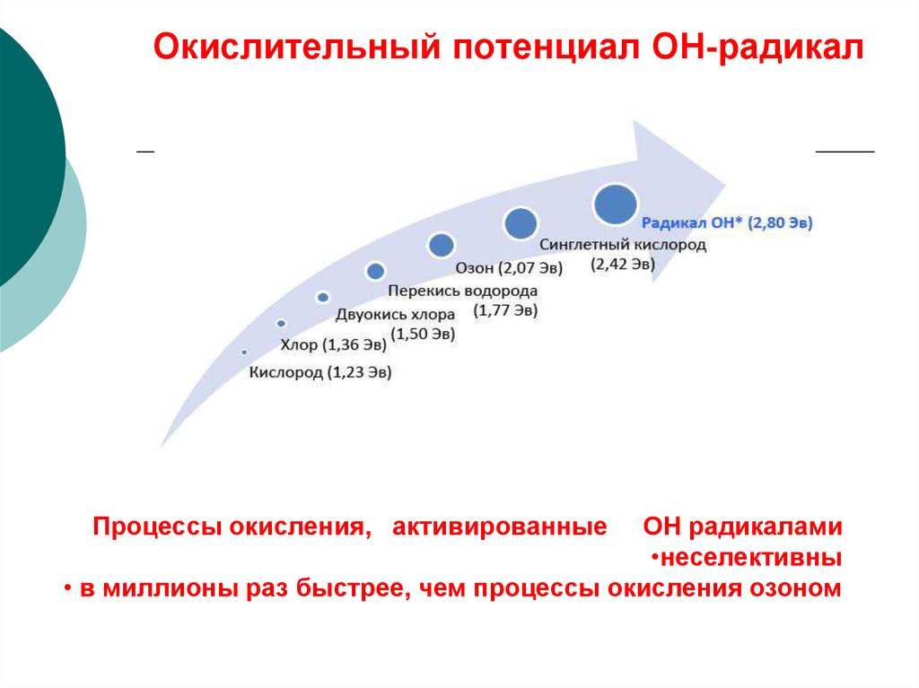 • в миллионы раз быстрее, чем процессы окисления озоном