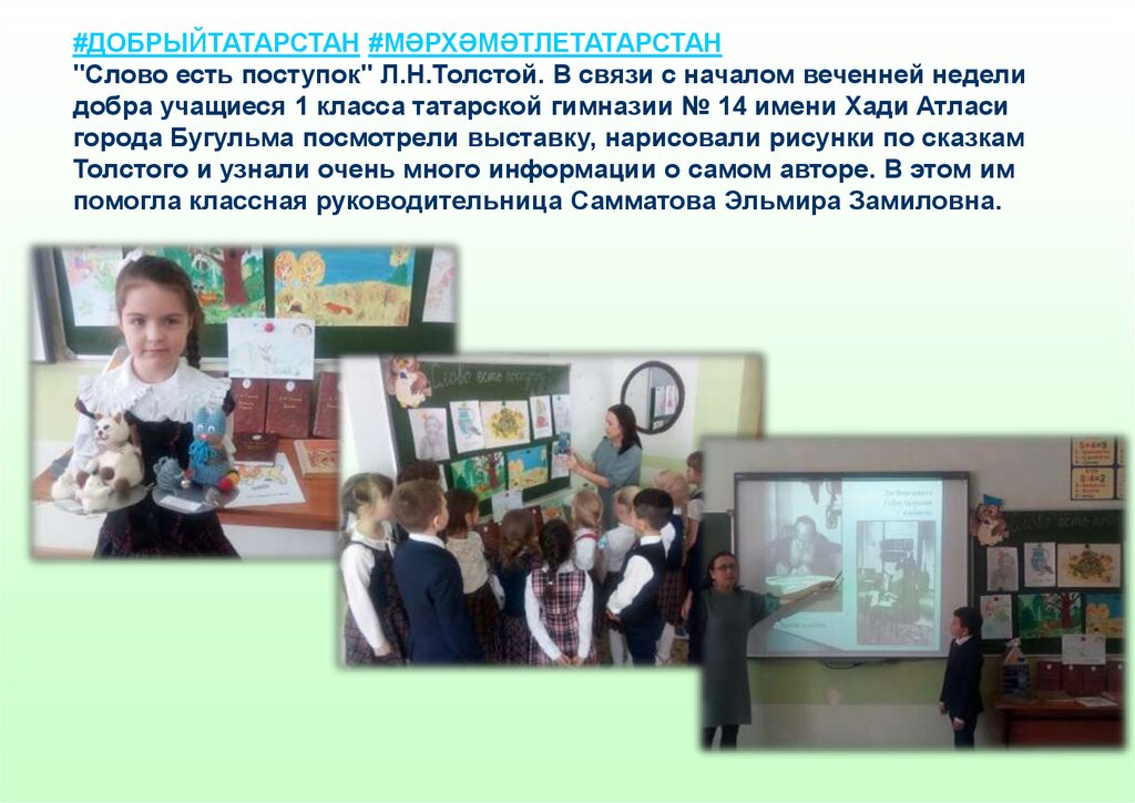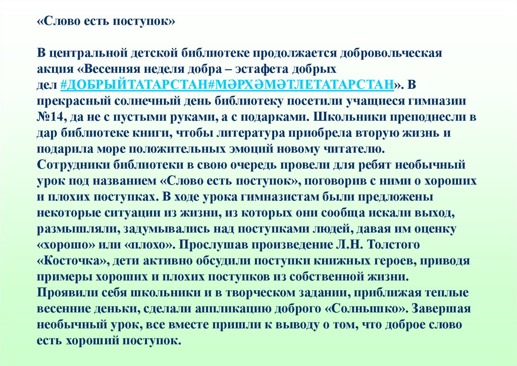 #ДОБРЫЙТАТАРСТАН #МӘРХӘМӘТЛЕТАТАРСТАН"Слово есть поступок" Л.Н.Толстой. В связи с началом веченней недели