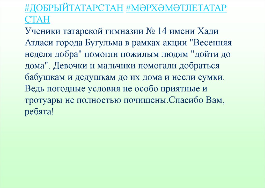 #МӘРХӘМӘТЛЕТАТАРСТАН #ДОБРЫЙТАТАРСТАН