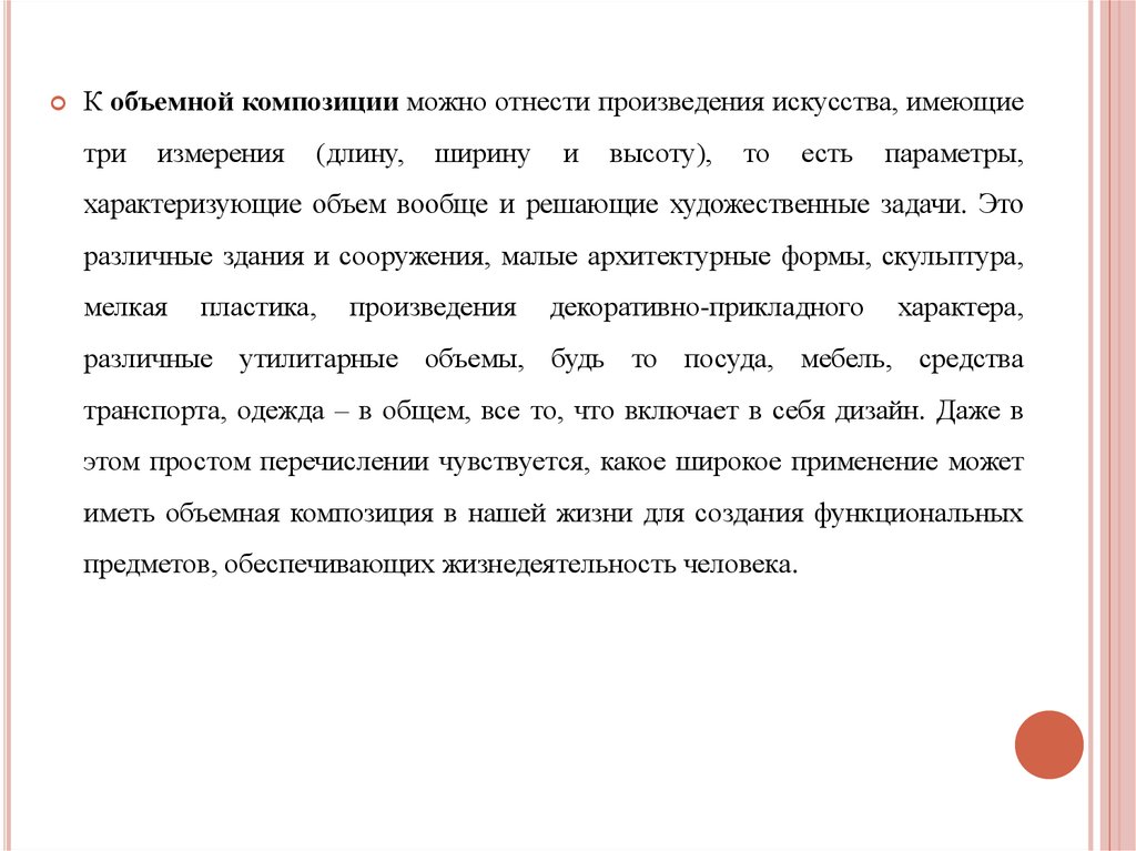 К объемной композиции можно отнести произведения искусства, имеющиетри