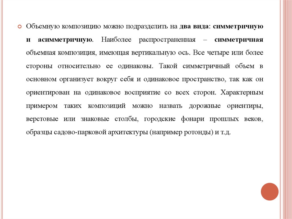 Объемную композицию можно подразделить на два вида: симметричнуюи